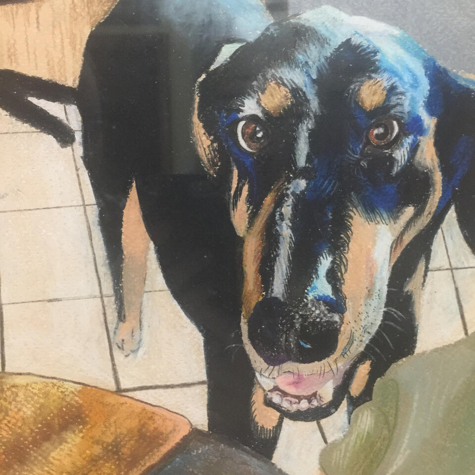 Our pets are very important to us. They're just as deserving of a place on the wall as any other member of the family! An oil-pastel portrait of a pet can make an excellent gift, memorial for a lost friend, or simply spoiling them (or yourself)!